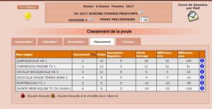 Équipe 3: Mélodie, Corinne, Manon et Séverine termine leur championnat par une défaite 3/1 face à Querqueville et se classent donc à la 3ème place de leur poule ! Un résultat satisfaisant pour les filles qui rejoueront donc en division 2 au printemps prochain.
