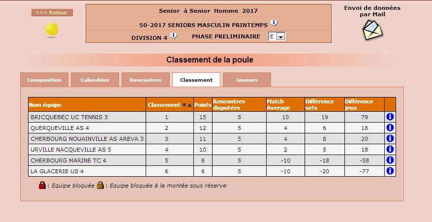 Équipe 5: Ludovic, Jean-marie et Alain ont perdu 3/1 à Querqueville lors de la dernière rencontre. L’équipe 5 termine 4ème de sa poule, en division 4. On aurait bien vu cette équipe monter cette année… ce sera pour l’année prochaine 😉